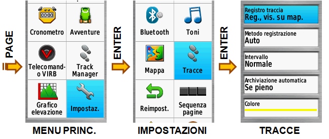Dal menu' Impostazioni si accede alla voce Tracce:
